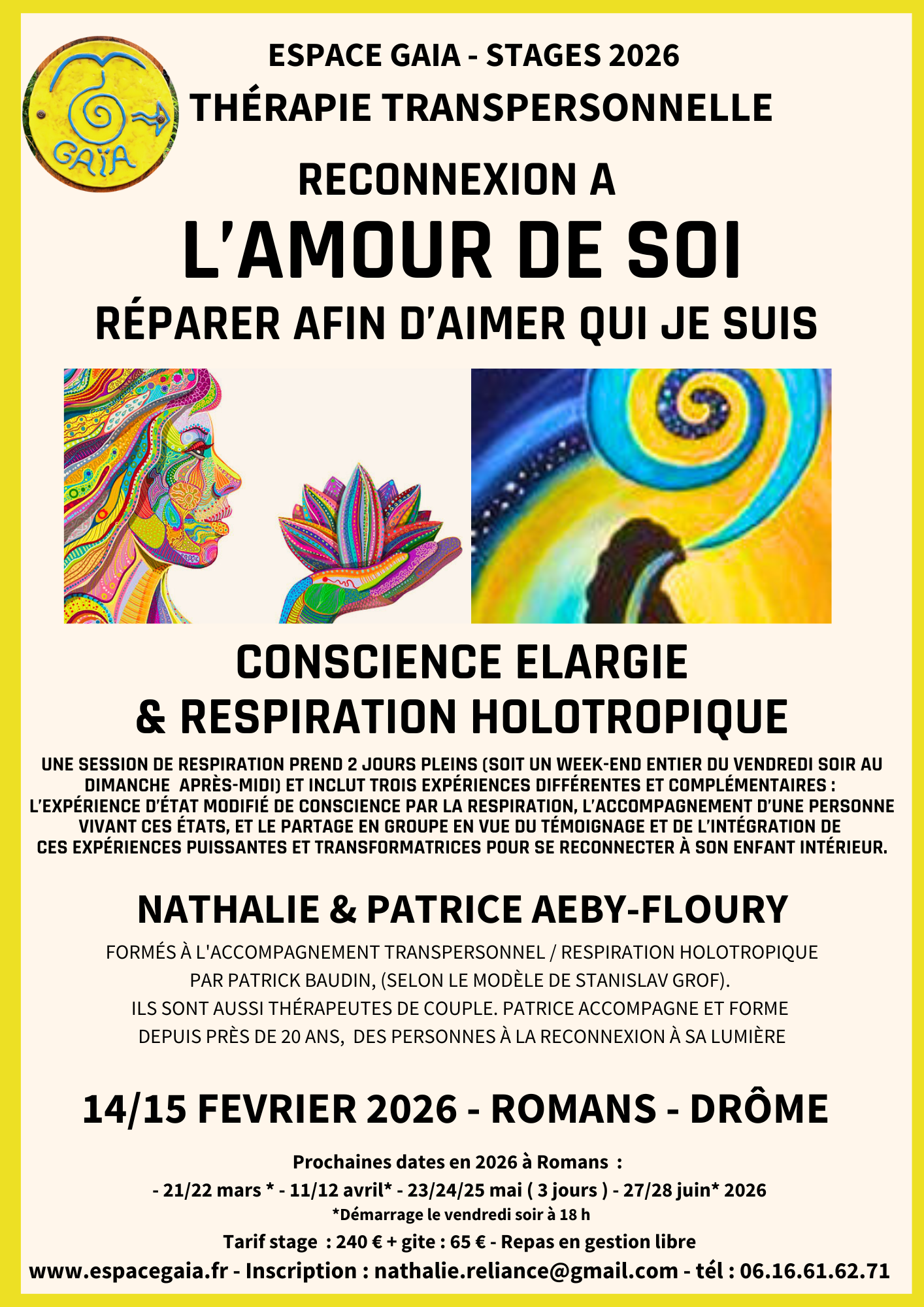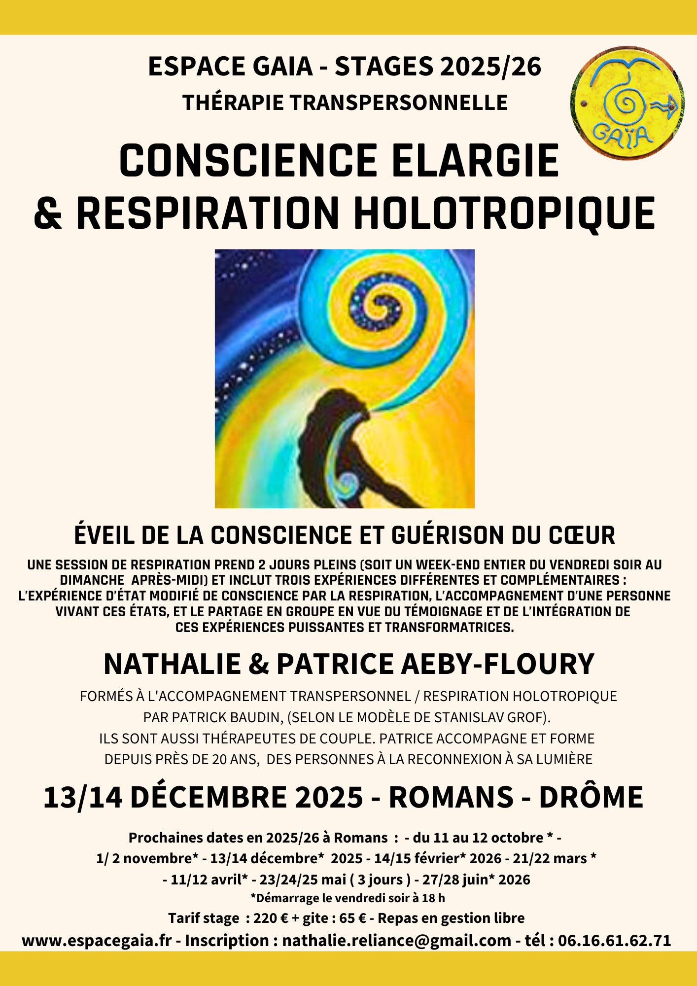 Séminaire intensif de 12 jours, ouvert à tous, incluant 2 sessions de Respiration Holotropique, 3 journées de travail sur les Quatre Voies de l’Initiation Chamanique, et 4 jours d’isolement volontaire en pleine nature et en espace restreint.